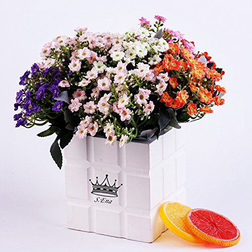 - *BEAUTIFUL & ELEGANT: S. Ena Artificial Silk Fake Little Milan Flowers with 6 stems and 36 flower heads, flower diameter 0.79'', Each Bunch dimension approx.: 10.6" H x 6.6"W.
