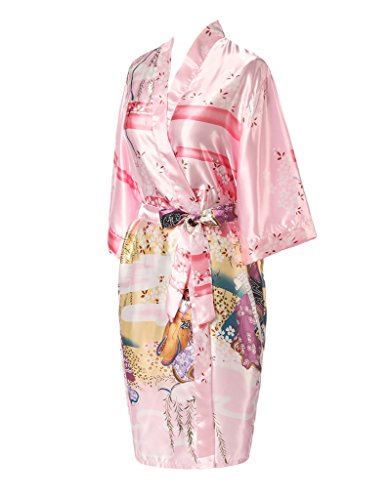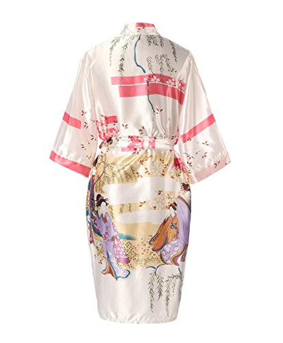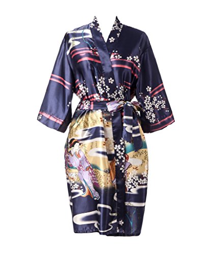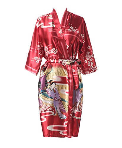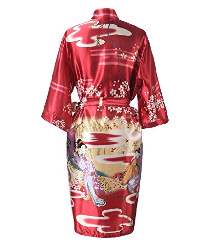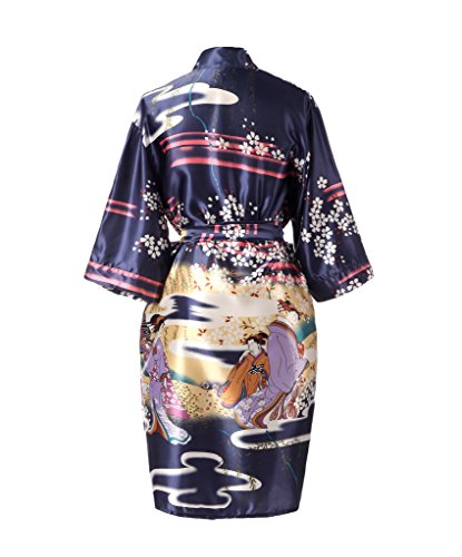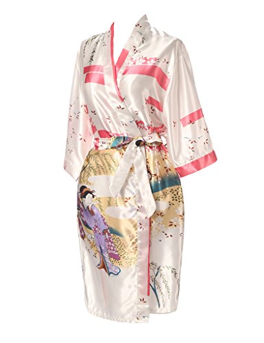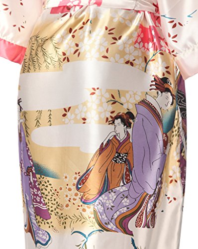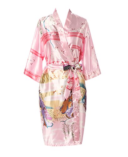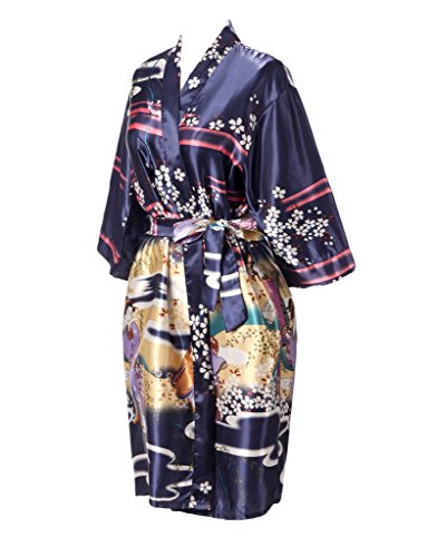 J.ROBE Women's Kimono Robe Printed Lotus Kimono Silk Robe Nightwear-S