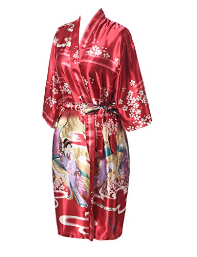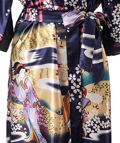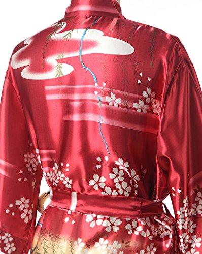 J.ROBE Women's Kimono Robe Printed Lotus Kimono Silk Robe Nightwear-L