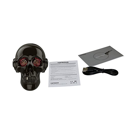 Studio : ShenzheYintai Tech Co.,LTD Publisher : ShenzheYintai Tech Co.,LTD Binding : Wireless Phone Accessory Product Description Color:Grey LED Skull head speaker is the 2018 newest designed, the sounds is so amazing! The eyes LED light is Cool ! it's your best choice ! Main Features: - The Skull Head Wireless Magic Box Bluetooth Speaker offers great quality sound with LED light. ? - It features one highly powerful 50mm total 4W acoustic driver for excellent sound. With the ultra-compact size and the unique skull design, it can be easily fitted into a backpack, suitcase, or a travel bag.? - This speaker is strong enough to fill up a kitchen, living room, or classroom. ? - It is ideal for personal usage, indoor party or outdoor BBQ or picnic with friends and family. Key Features : - New creative design with size (8 x 8 x 8 CM) in a retail box packing, it is a good idea to choose this as a present or novelty gift.? - The Bluetooth technology is compatible with all Bluetooth-enabled devices,offers you instantaneous connection and longer Bluetooth connectivity range of 10 meters.? - Built in 1150 mAh rechargeable battery lasts up to 24 hours for night light or 6 hours of music playtime with flashing LED lights. ? - Unique design Bluetooth Skull Speaker with built in accessories and soft bottom spare you from worries on slipping or scratching the wood. ? - The impressive design with night light function is also nice for Home Decor.? Product Name: Skull Wireless Speaker Product Weight: 0.6kg Bluetooth veision: 4.1 Total Output power: 5W Bluetooth support profile: A2DP Frequency range: 80Hz-18KHz Playing time: about 8hours after fully charged Speaker Size: 8*8*8CM Package included: 1 x Skull Wireless Speaker 1 x USB Charging Line 1 x Retail Box 1 x Instruction Book 0
