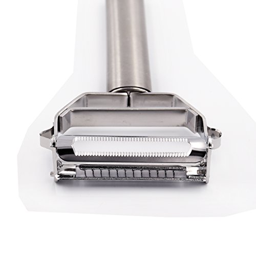 SUPER QUICK PEELING: Our premium peeler with ultra sharp blades glide over contours and take off wafer thin peels limiting waste.