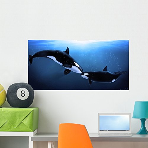 Orcas Tenderness Wall Mural by Wallmonkeys Peel and Stick Graphic (36 in W x 18 in H) WM21171