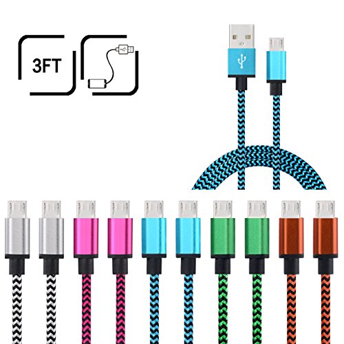Micro USB Cable, Ailkin High Speed [10-Pack] 3Ft Nylon Braided USB 2.0 A Male to Micro B Data Sync & Charging Cable for Samsung and Other Android Smartphone, Colorful