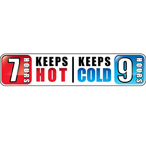 Thermax double wall vacuum insulation for maximum temperature retention: keeps contents hot for 7 hours, keeps cold for 9 hours