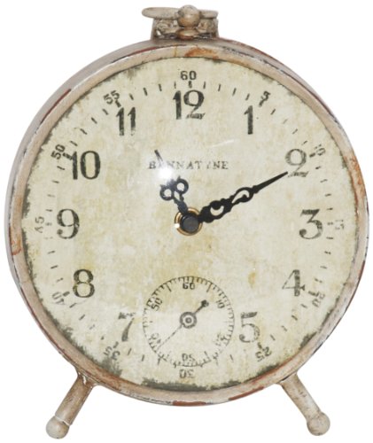 Zentique was established in 2002. Our unique products are carefully handpicked from travelling overseas. This piece is a small round metal clock on three stands.