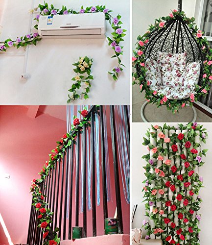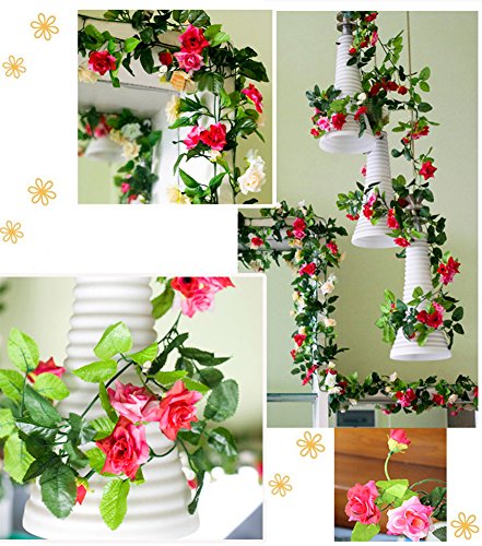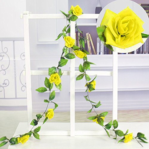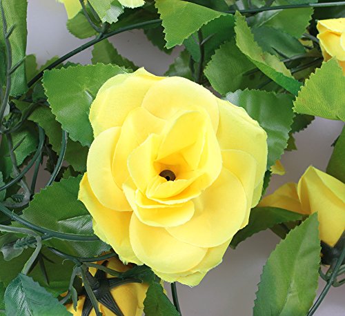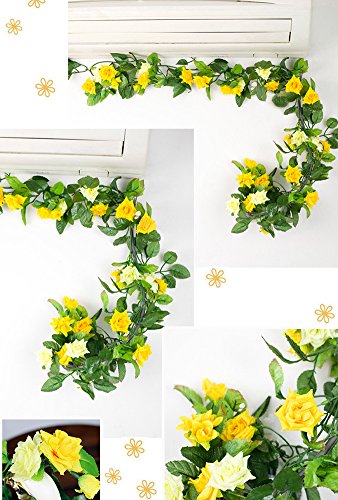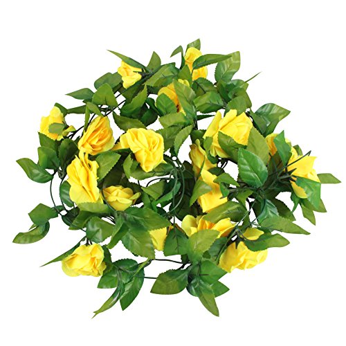 Meiwo 9 Roses Garland Silk Flowers Vine Garland Wall Hanging Flowers Vine for Home Wedding Garden Decoration Pack of 2(Yellow)