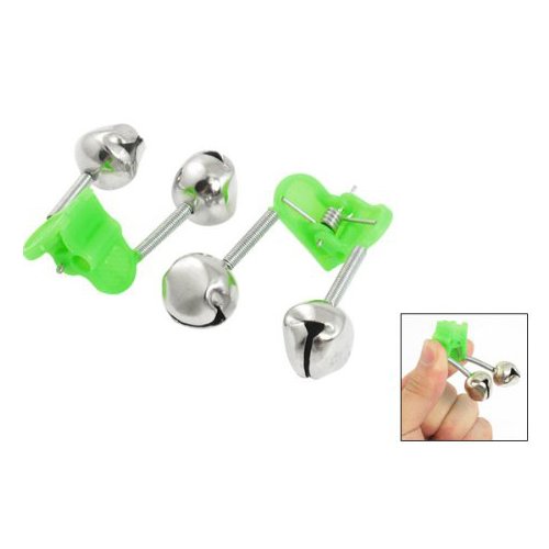 -. Title : SODIAL(R) 10 Pcs Green SP.R.Ing Loaded Clip Double Fishing Rod Alarm Bells Silver Tone