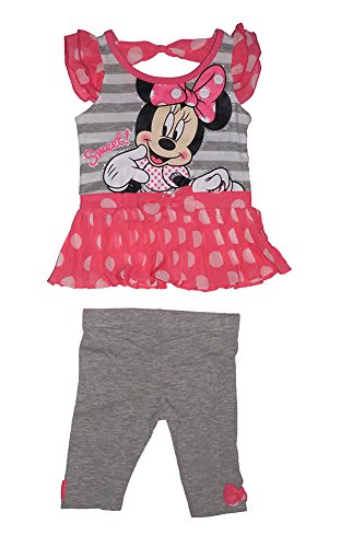 -. Title : Disney Minnie Mouse Sweet Pleated Tunic T Shirt and Legging Outfit - Pink Grey