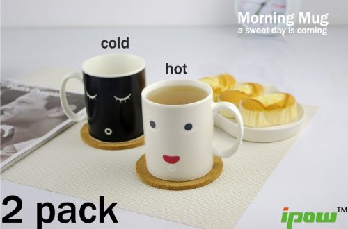 - Feature : when cold = mug shows a sleeping face / when hot = mug wakes up! / Holds 12-ounce,with attractive gift box / For coffee,tea and hot chocolate / Two pack, share with your family.