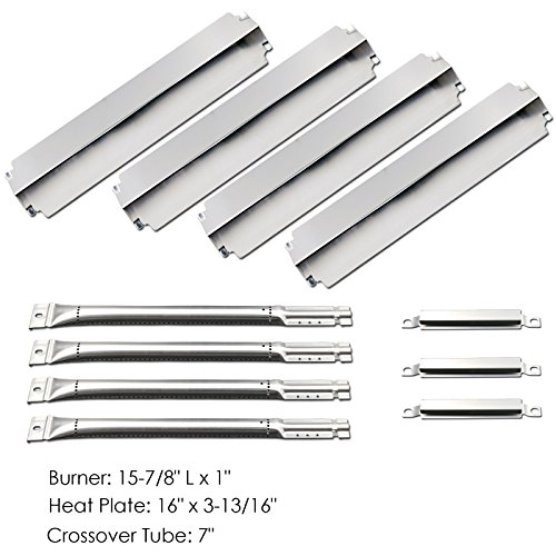 Uniflasy Gas Grill Repair Replacement Parts Kit with Stainless Steel Grill Burners, Heat Plate and Crossover Tube for Charbroil 463248208, 463268107, 466248208