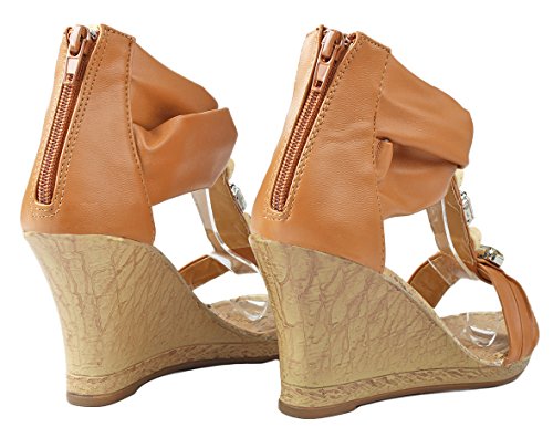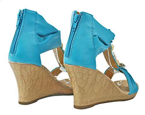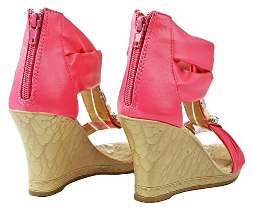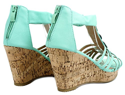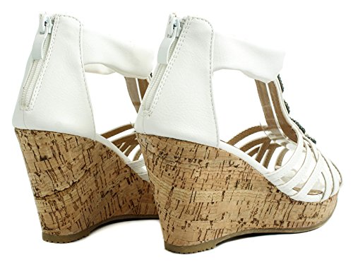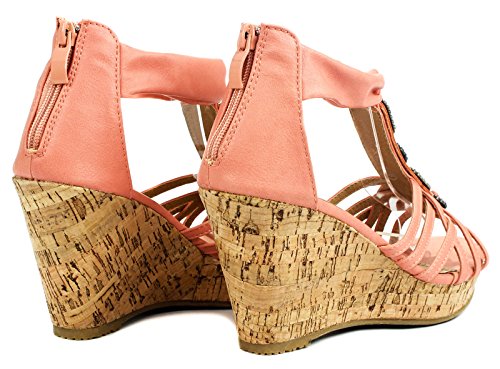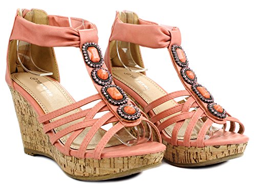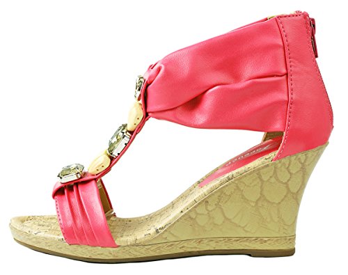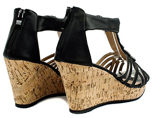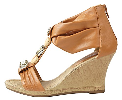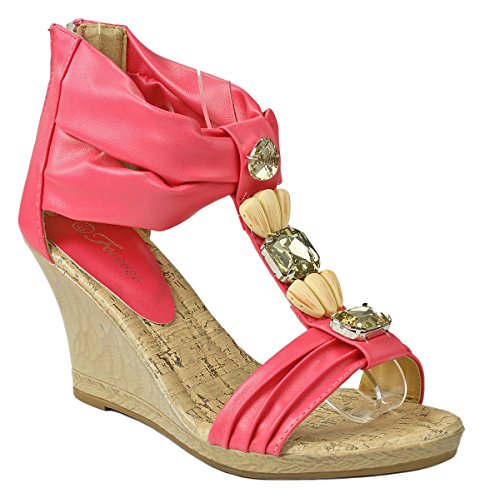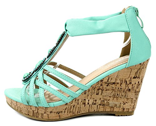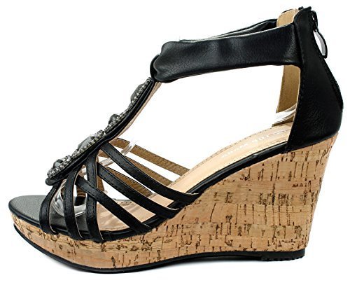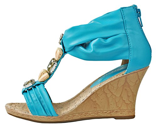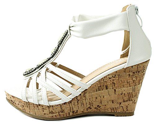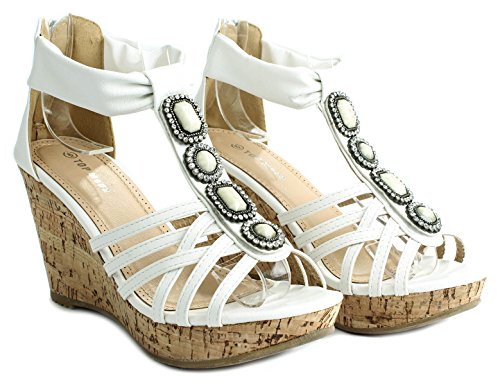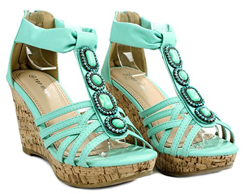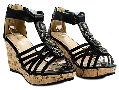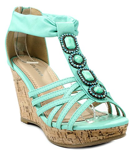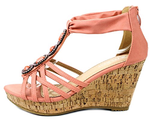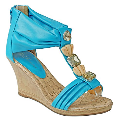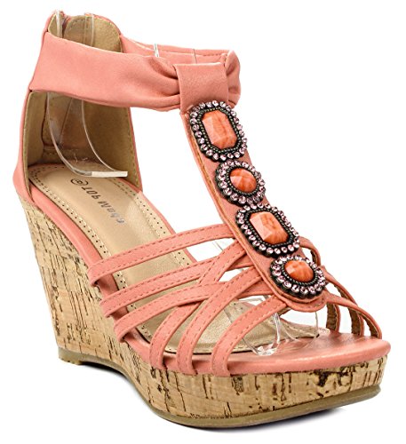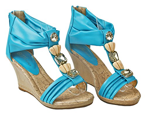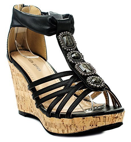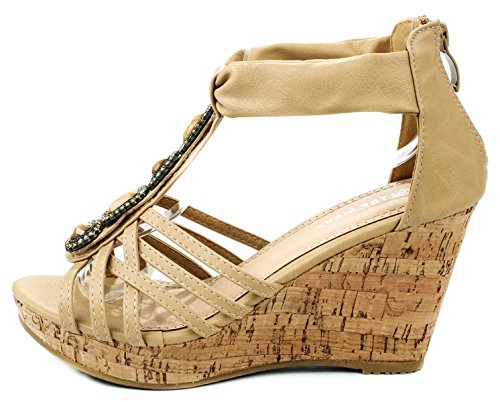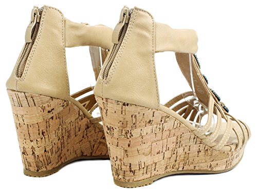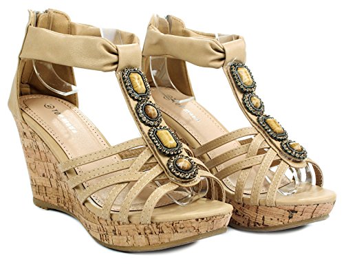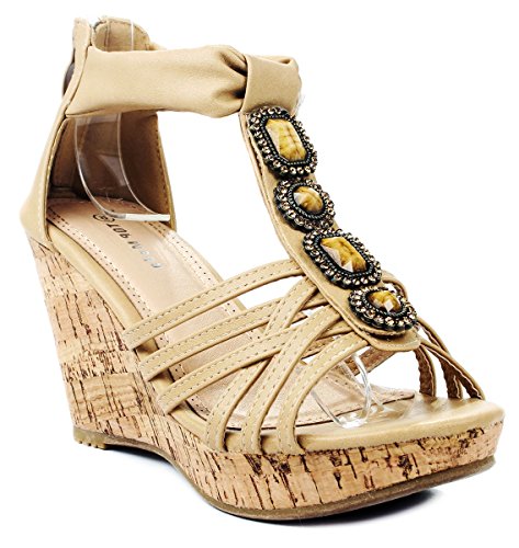 | XE5 Gem Jewel Beaded Strappy Ankle Cuff Comfort Cork Platform Wedge Dress Sandal Shoes |