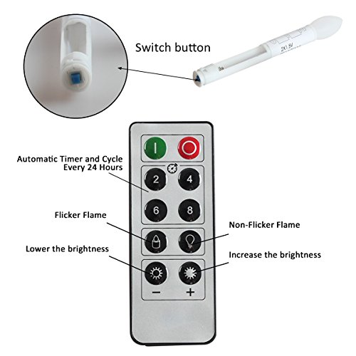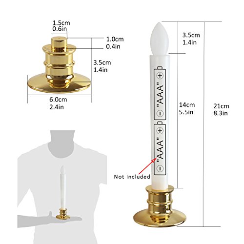 【CANDLES SPECIFICATION】 You can choose tapers candles silver£¬ gold and white with 10 Keys Remote Timers. The LED candle holders can be removed. Require 2 AAA batteries per candle (Not included); Long distance of the remote (The distance can be to 5 meters with the infrared remote control), the timer remote controller of christmas window lights uses a CR2025 cell battery (Included).