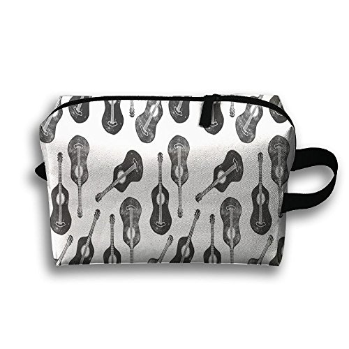 (LzVong)/Accessories/Wallets, Money Key Organizers/DIRECT FROM USA/LzVong Black Guitar Portable Makeup Pouch Travel Hangbag Full Print