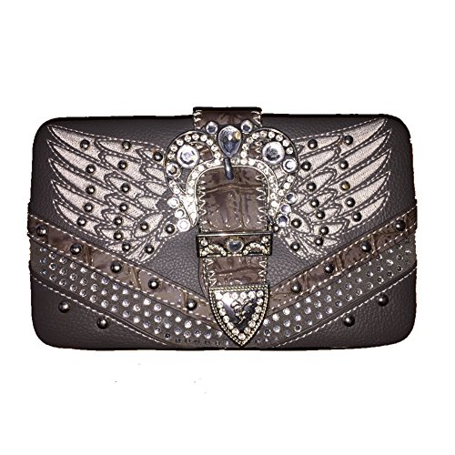(Texas West)/Accessories/Wallets, Money Key Organizers/DIRECT FROM USA/Rhinestone Angel Wings Buckle Clip Women's Wallet in Deep Grey, Extra Checkbook