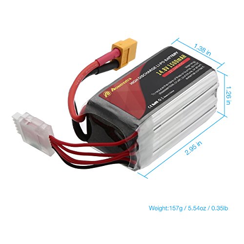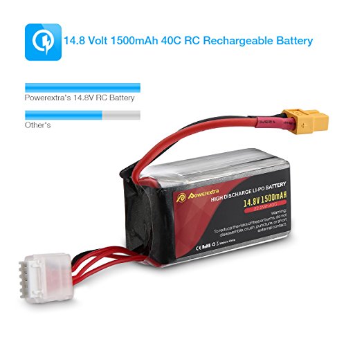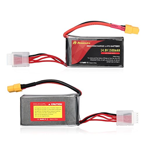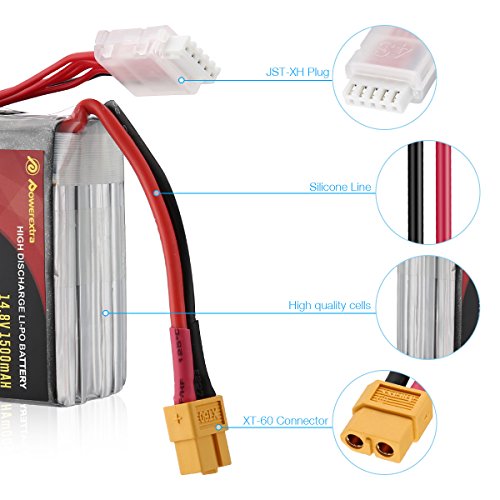 Studio : Powerextra Publisher : Powerextra Binding : Toy Product Description Powerextra 2 Pack 14.4V 1500mAh 40C XT60 connector Lipo battery Capacity(mAh): 1500mAh Voltage(V): 14.4V Discharge Rate (C): 40C Max Burst discharge Rate (C): 80C Configuration: 3S1P Net Weight(dev.20g): 5.46Oz Size:2.95x1.26x1.38inch/pc Connector Type: XT60 Connector Compatible with: Nemesis 240 Mini, Skylark M4-FPV250, Mini Shredder 200, INDY250 PLUS, HOVERSHIP MHQ2 (270), ZMR 250, Emax Nighthawk 250, Mini H, QAV250, QAV180/210, Danaus, Vortex 285, Mini H, FLIP FPV FRAME, Emax Nighthawk 250, ZMR 250, HOVERSHIP MHQ2, MOJO 280, etc. Notice: (1)For the RC battery, only if the voltage and the plug match, then it will fit. (2)To double make sure safety, please have a check first whether the battery surface is alright when you get it and whether the voltage is normal before using. (3)If the new battey won't hold a full charge or loss the charge very quickly in short time, please use Balance Charger to charge and recycle several times first. 0