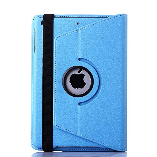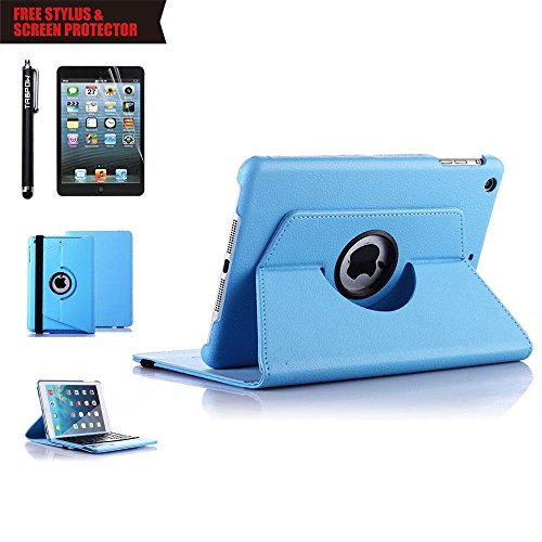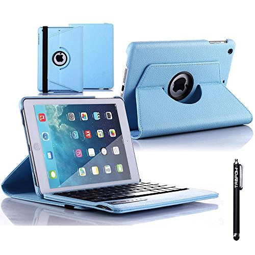 iPad Mini 2 Bluetooth Keyboard Case, iPad Mini 3 Bluetooth Keyboard Case, TabPow Baby Blue Classic Folio 360 Degree Rotating PU Leather Case [Built in Stand] [Elastic Strap] [with Detachable Bluetooth Keyboard] Cover for Apple iPad Mini Retina, iPad Mini 2/3 [FREE SCREEN PROTECTOR & STYLUS]