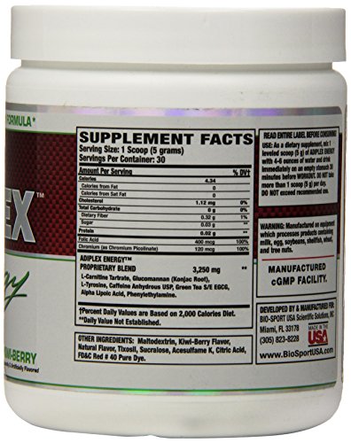 -. Binding : Health and Beauty -. Brand : Biosport USA -. EAN : 0705105002002 -. Feature : Increases energy and focus / Boosts metabolism / Ignites and accelerates fat loss / Strength and power increase / Tone and tighten muscles -. IsAdultProduct : 0 -. Label : Bio Sport -. Manufacturer : Bio Sport -. MPN : BISPADIP150GKIWIPW -. NumberOfItems : 1 -. PackageQuantity : 1 -. PartNumber : BISPADIP150GKIWIPW -. ProductGroup : Health and Beauty -. ProductTypeName : HEALTH_PERSONAL_CARE -. PublicationDate : 2014-10-19 -. Publisher : Bio Sport -. ReleaseDate : 2015-04-08 -. Studio : Bio Sport -. Title : Biosport USA Adiplex Energy, Pre Workout Fat Burner for Women, Designed to increase workout motivation while supporting lean muscle and weight loss, Kiwi-Berry, 30 Servings/150 Gram -. UPC : 705105002002