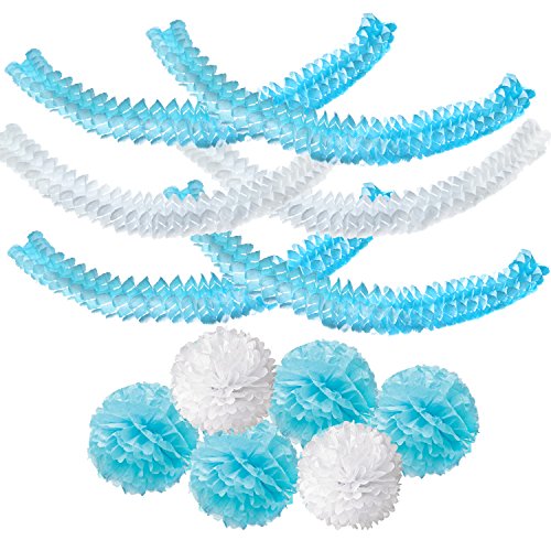 - Package includes: 6 PCS Tissue Hanging Garland (4 x Blue and 2 x White) and 6 PCS pom pom flowers (4 x Blue and 2 x White), different colors bring some romantic and cozy atmosphere to your party.