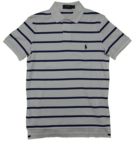 Polo Ralph Lauren Men's Pony Logo Striped Interlock Polo Shirt (M, White/Bali Blue)