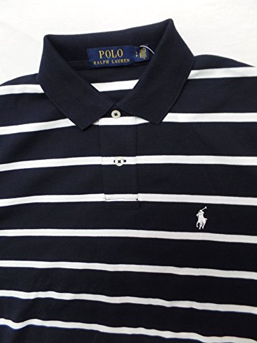 Polo Ralph Lauren Men's Pony Logo Striped Interlock Polo Shirt (XXL, College Navy)