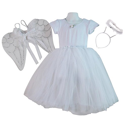 -. Title : Making Believe Girls Complete Nativity Angel Costume Set - White Tutu, Leotard, Angel Wings and Halo Headband (Choose Size)