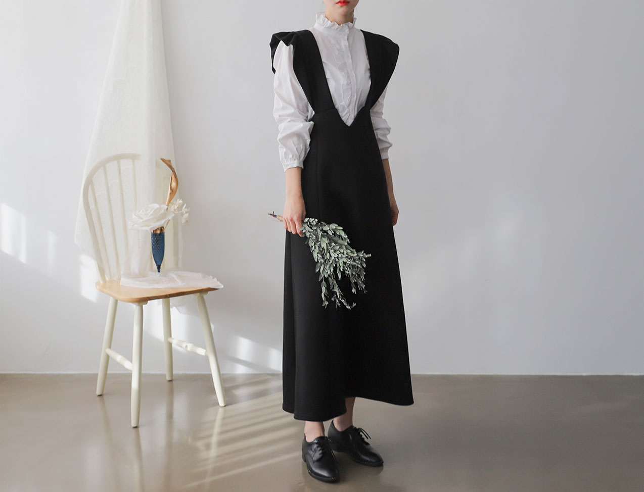 상세사이즈 : 총장 130cm/ 어깨 34cm(끈만7cm)/ 가슴 43cm