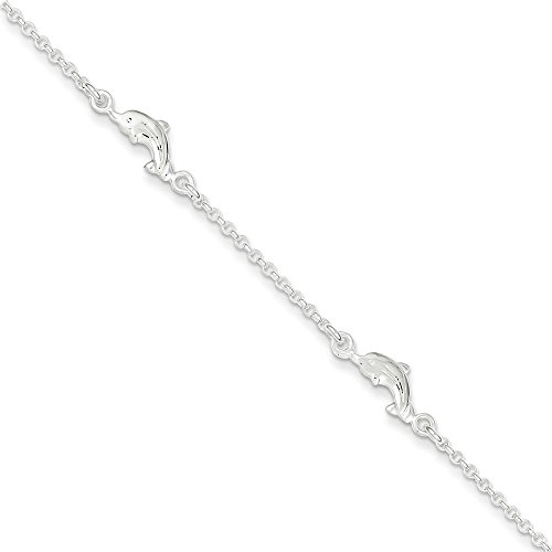 -. Feature : .925 Sterling Silver / Finish: Polished / Polished Dolphin Anklet Bracelet With 1" Extender, 9 Inches / Clasp: Lobster / Length: 9 Inches / Width: 1.50 Millimeters / Approximate Weight: 3.66