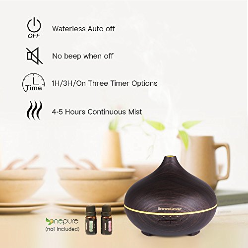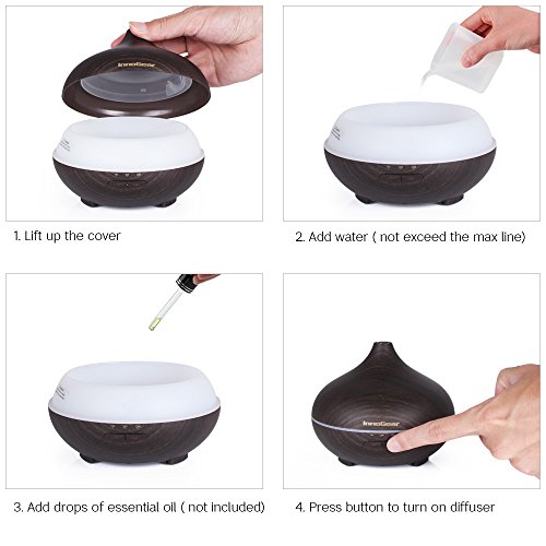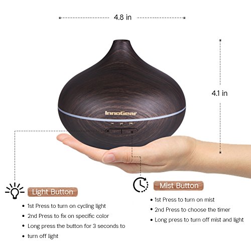 InnoGear 150ml Aromatherapy Essential Oil Diffuser Wood Grain Aroma Diffusers Cool Mist Humidifier with Timer Adjustable Mist 7 Color Changing Night Lights...