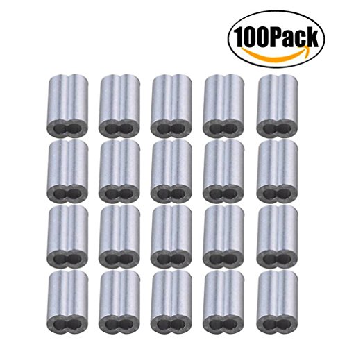 ThreeBulls 100 Pcs 3/64-inch Wire Rope Aluminum Sleeves Clip Fittings Cable Crimps