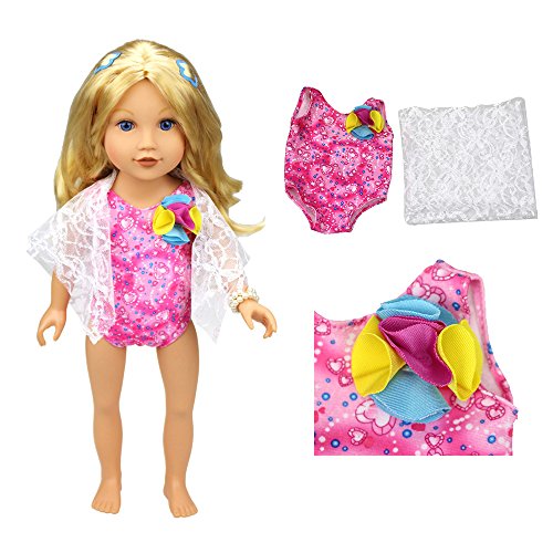 -. Feature : Package:6 Pieces ( 3* Different Swimsuits + 1* Hat + 1* Cover Up) / Materials: 100% High Quality, Easy to Put On. / Delivery: Fulfillment by Amazon, Get It in 1-3 Days! / Fits For 18 Inches Doll Perfectly (including American Girl Dolls, Madame Alexander,Our Generation, My Life As Doll, etc.) / 2017 Summer Newest Doll Bathing Suits Collection. It's amazing to enjoy Summer Vacation on beach with your SWIMSUIT dolls.