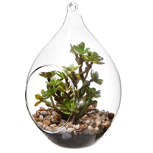 Freshen up your home decor with this charming and elegant artificial plant ornament. Made of clear glass in a stylish teardrop shape, this elegant globe is the perfect vessel to display the realistic-looking artificial succulent housed inside. A string or thread can easily be slipped through the glass loop at the top to turn this tabletop decoration into a hanging ornament ideal for any space, indoors or out. Bring sophisticated style and a touch of natural-looking greenery to your home with this glass artificial plant globe.**Official MyGift® product.**