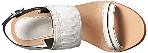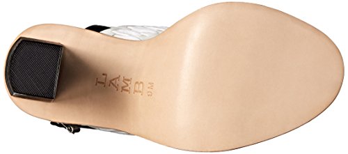 Block-heel sandal featuring huarache-inspired weaving at vamp strap and slender toe strap Adjustable backstrap with buckle closure Brand : L.A.M.B. Item model num : Valiant MPN(PartNumber) : G2252-103 EAN : 0800554056726 Product Dimensions(LxWxH) :