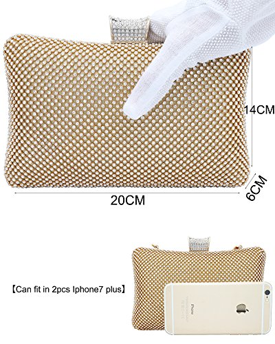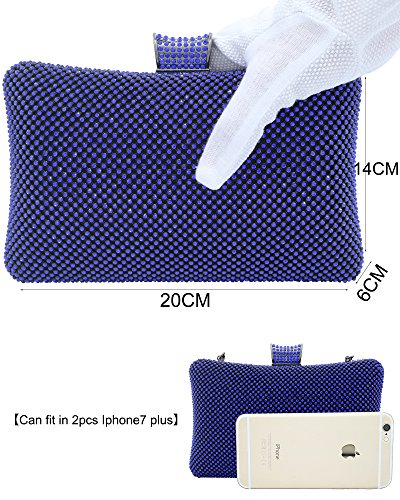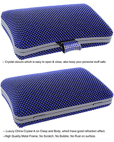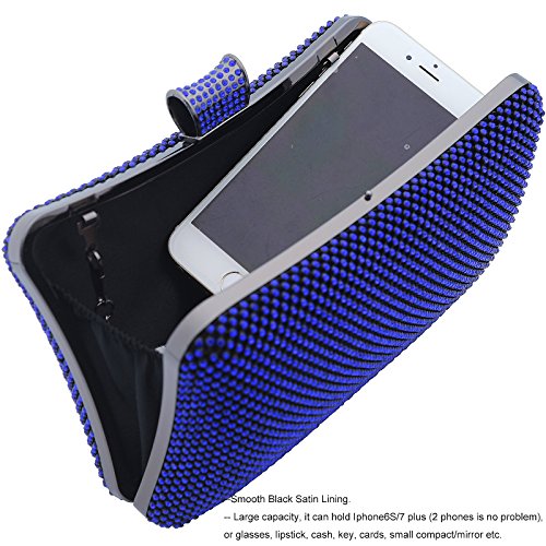 -. Feature : [Material]--Top grade clear rhinestone A which is very dazzling like a diamond or gemstone, no blemishes. Silver plating hardware which was carefully selected, no scratch, no rust on the surface. high quality satin lining. / [Chain]--with 1pcs detachable O chain (length at 120cm). you can wear it as shoulder/crossbody strap, or clutch/minaudiere in hand. / [Specification]--20cm (L)*6cm(W)* 14cm(H), Large capacity, it can hold Iphone6S/7 plus (it is ok to fit 2 big phones), or glasses, lipstick, cash, key, cards, small compact/mirror etc. / [Features]--Crystal closure which is easy to open & close, also keep your personal stuff safe. Classic pillow shape which is the perfect bag to match your charming jewelry, evening shoes and dress. / [Occasions]--cocktail/birthday/prom/wedding party, baby shower, Engagement, Social Activities, nightclub or night out. Great gift for bridal, bridesmaid, women, ladies etc.