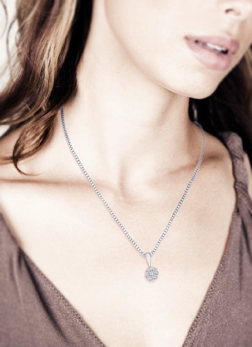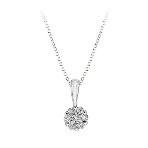 -. Title : Diamond Floral Cluster Earrings and Pendant with Box Chain Jewelry Set in 10K White Gold (1/2 cttw)