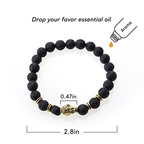 Aromatherapy Jewelry Essential Oils Diffuser Bracelets for Women Men Kids Boys Girls Couples / Lava Stone Rock Fragrance Diffuser Bracelet (Buddha-golden)