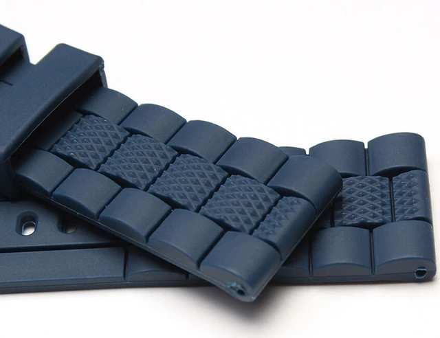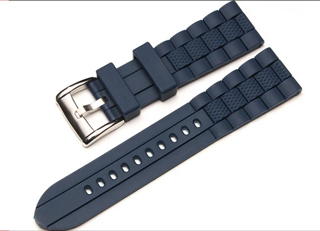 설명 밴드 폭: 23mm 재료: 고무 색상: 어두운 청이 thinkness: 3.5mm에 관한 버클: 스테인레스 스틸 버클이 구멍: 7 개의 구멍 유형: 패션 패턴: 구멍 로고: 예 사용자 정의: 지원 customsize cprint 주문 로고. 패턴. 크기. 등 패키지: 1 개 watchband*1pcs*loading 스트랩 도구와 3pcs*hand 귀( 핀)
