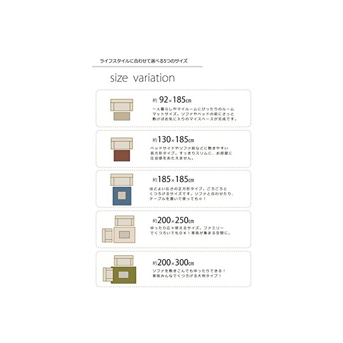 사이즈: 약92×185cm/약130×185cm/약185×185cm/약200×250cm/약200×300cm