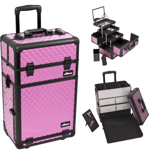 Sunrise I3562DMPLB Purple Diamond Professional Rolling Aluminum Cosmetic Makeup Craft Storage Organizer Case with Split Drawers, Extendable Trays and Brush Holder