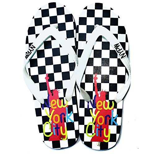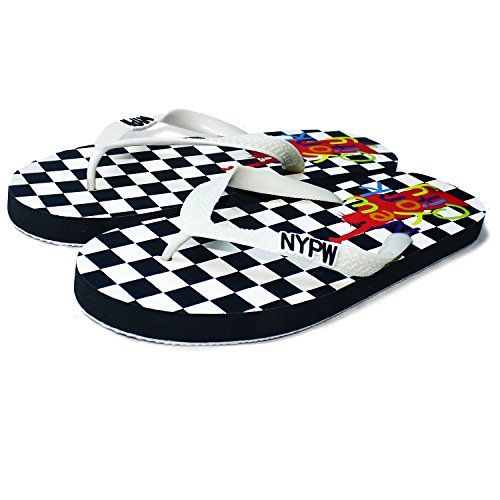 (P W New York)/Women's/Sandals/DIRECT FROM USA/P W New York Women's Casual White Rubber Flip Flops Slippers, Checkered Print