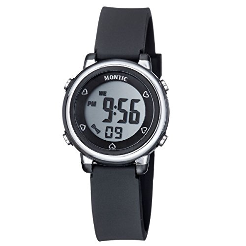 -. Title : Digital Watch in Black Plastic Case and Rubber Strap, Casual Watch Multi function with Alarm and Stopwatch Water Resistant Sport watch by Montic