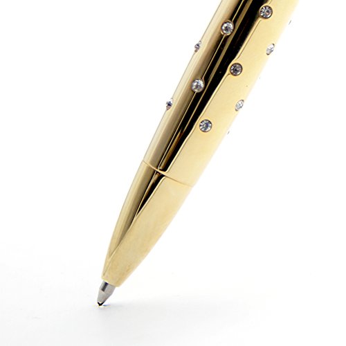 -. Title : Gold Ballpoint Pen Retractable Rollerball Pen in Gift Box, Classic 24K Gold Plated & Palladium Trim Inlaid with Top Zircon Stones / Artificial Diamonds by 2cl direct - Gold