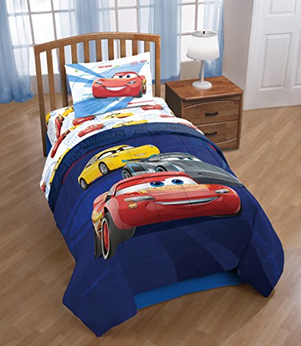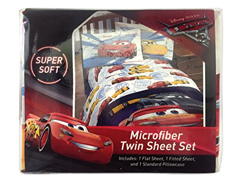 Studio : Jay Franco and Sons, Inc. Publisher : Jay Franco and Sons, Inc. Binding : Kitchen Product Description Blindsided by a new generation of blazing-fast cars, the legendary Lighting McQueen finds himself pushed out of the sport that he loves. With the help of Cruz Ramirez and Hudson Hornet, No. 95 prepares to compete on Piston Cup Racing's biggest stage. Transform any child's bedroom with a Disney/Pixar Cars 3 High Tech twin sheet set. This super soft microfiber sheet set will make any young Cars movie enthusiast smile. Each 3 piece, super soft microfiber full sheet set includes a fitted sheet, flat sheet and one standard reversible pillowcase. The bold colors and exciting design will enhance the existing decor of any kid's or toddler bedroom. Fitted sheet measures 39" x 75", flat sheet measures 66" x 96" with (1) 20" x 30" standard pillowcase. Decorative bedding features popular characters and icons from the movie. Easy care, machine washable polyester. Wash cold, tumble dry low. Imported 0
