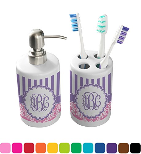 -. Brand : RNK Shops -. Color : Pink -. Feature : YOU WILL RECEIVE AN EMAIL WITH A LINK TO CUSTOMIZE YOUR ORDER WITHIN 1 BUSINESS DAY / Custom P.R.Inted with Your Design / Easy to clean / 2 Piece Set -. Label : Mom Innovations -. Manufacturer : Mom Innovations -. MPN : cp-crmc-bthrm-acc+187079 -. PartNumber : cp-crmc-bthrm-acc+187079 -. ProductGroup : Home -. ProductTypeName : HOME_BED_AND_BATH -. Publisher : Mom Innovations -. Studio : Mom Innovations -. Title : Pink & Purple Damask Bathroom Accessories Set (Ceramic) (Personalized)