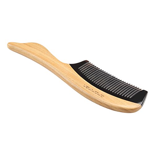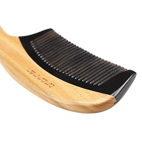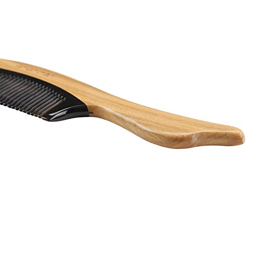 Amammon Sandal Wood Black Ox Horn Hair Comb - Anti Static Natural Detangling Hair Comb - Handmade Premium Quality Natural Fine Tooth Fish Tail...