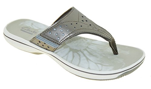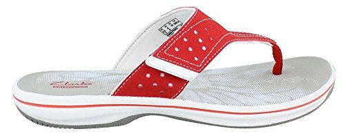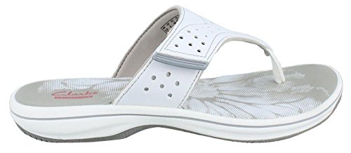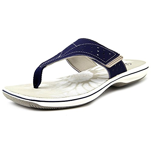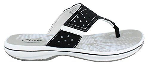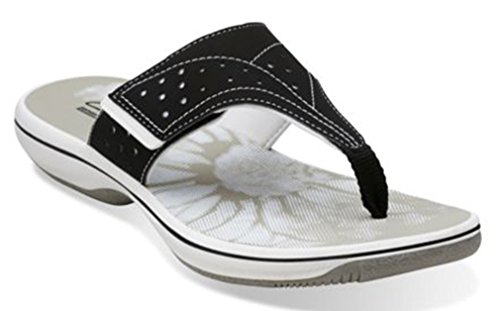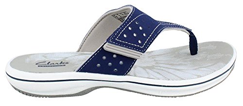 Women's Clarks, Brinkley Star Thong Sandals The perfect summertime staple sandal that?ll fit your foot perfectly! Manmade upper Thong style sandal with adjustable hook and loop strap for a snug fit Fabric strap lining Foam cushioned footbed for added comfort 1 inch heel Rubber outsole. Heel Height of 1.00 inchesFeature