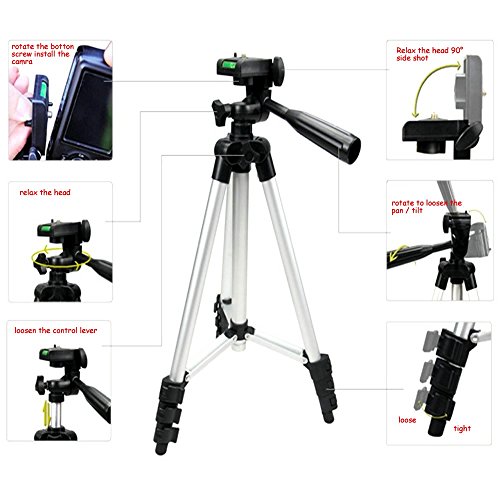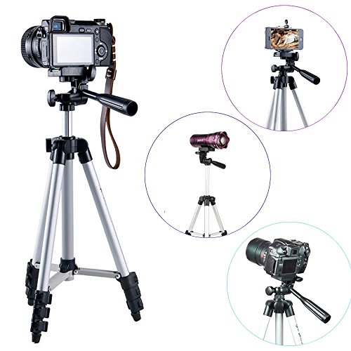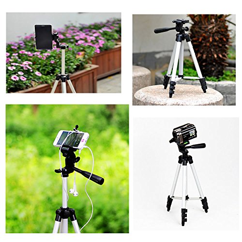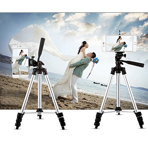 FOANT Aluminum Professional Lightweight Camera Tripod for iPhone, Cellphone,Gopro Hero,Cameras,Camcorder with Cellphone Holder Clip and Remote Shutter-43"/Silver
