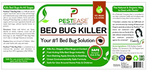- ERADICATE BED BUGS IN YOUR HOME - PestEase® uses a proprietary blend of All Natural & Organic ingredients to Kill Bed Bugs on Contact. Don't let Bed Bugs infest your home and put you and your family at risk. PestEase® Kills adults, eggs, and nymphs FAST and prevent them before they have a chance to invade your home or property.