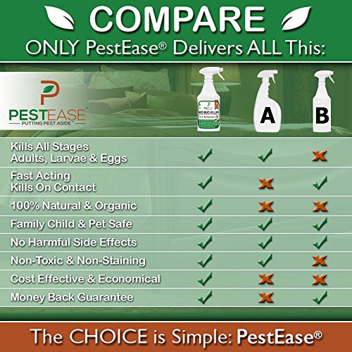 - CHILD AND PET SAFE - PestEase® does not use Chemicals, Pesticides, or Poisonous Ingredients. PestEase® Bed Bug Killer was formulated to Kill Bed Bugs while being 100% safe around your children and pets. You can be rest assured that when using Any PestEase® products your family will not be exposed to the dangers and long term side effects these chemicals cause. Let the All Natural, Organic, and Non Toxic Ingredients put an END to your Bed Bug Problem.