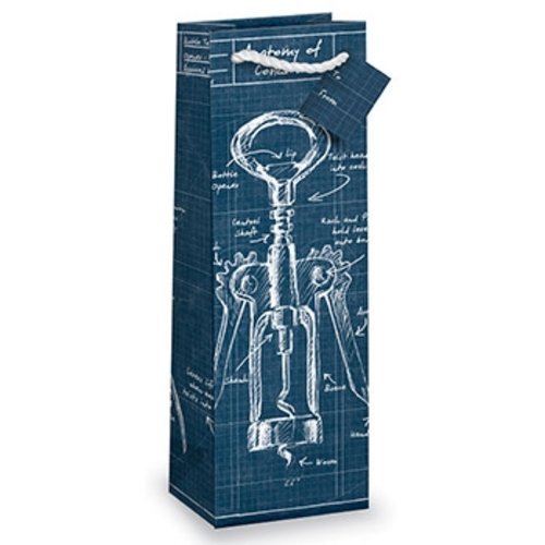 Epic 43-508 Anatomy of A Corkscrew White Schematic Drawing Blue Bottle Gift Bag