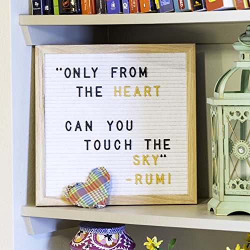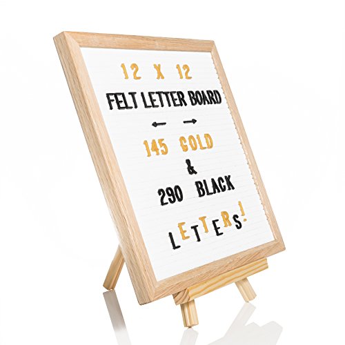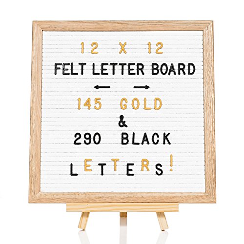 Vintage Changeable Felt Letter Board (12 x 12) | Premium Solid Oak Wood Frame | Includes 290 Black and 145 Gold Character Set (White)